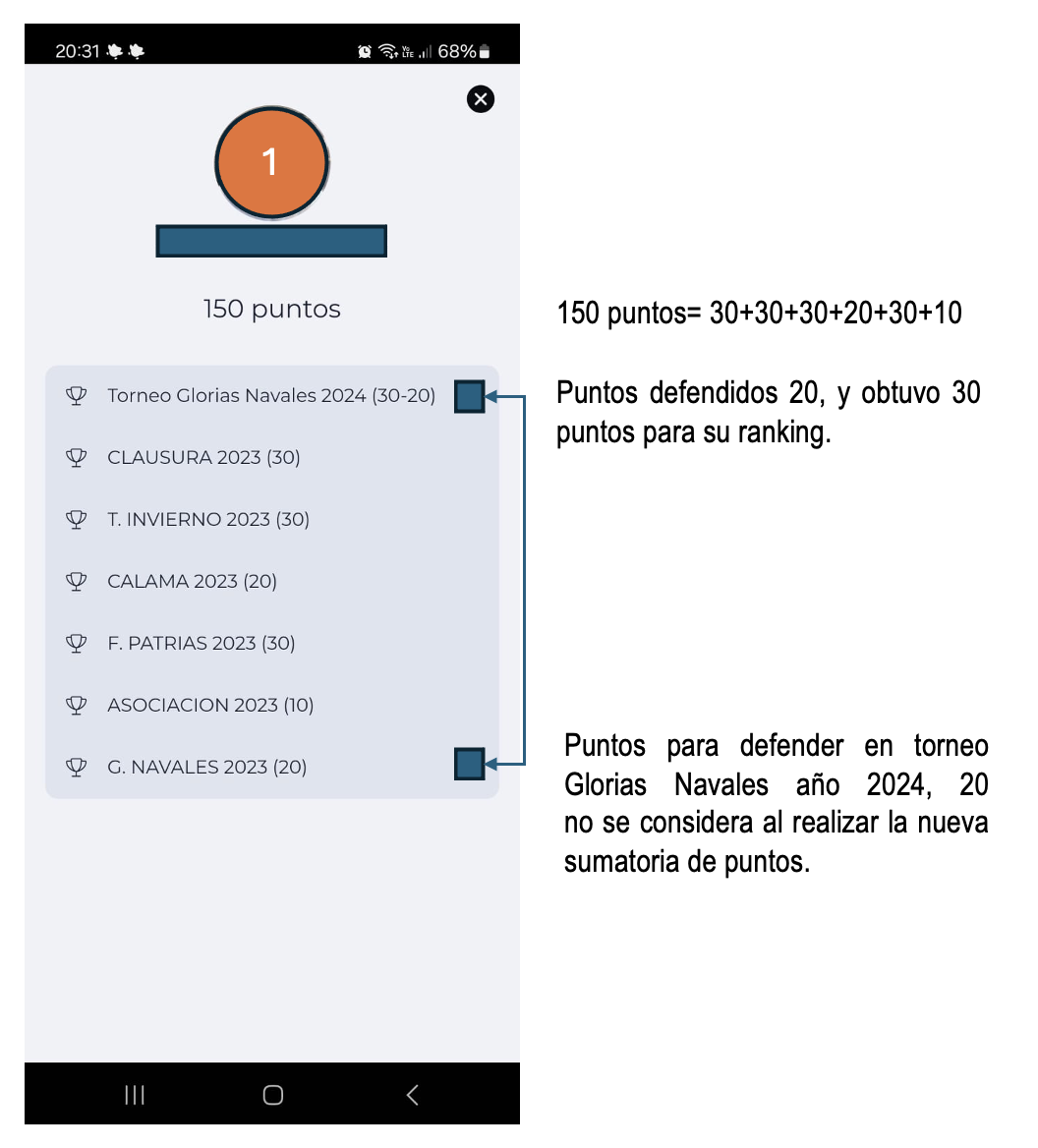Por ejemplo, si un jugador ganó un torneo y obtuvo 500 puntos, deberá alcanzar la misma ronda o una superior en la próxima edición para conservar esos puntos en su clasificación.